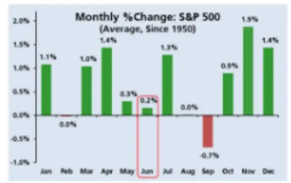 《瑞银季节性洞察》主要探讨金融市场中年复一年、月复一月、周复一周以及日复一日的重复模式,6月16日,瑞银分析师在新一期《洞察》中提醒:六月的 5 个季节性要点值得留意!一、 六月各类资产普遍盘整六月往往是盘整的月份。货币、大宗商品和股票都是如此。1950年来的平均数据显示,标普 500 指数6月小幅上涨 0.2%(图表 1)。