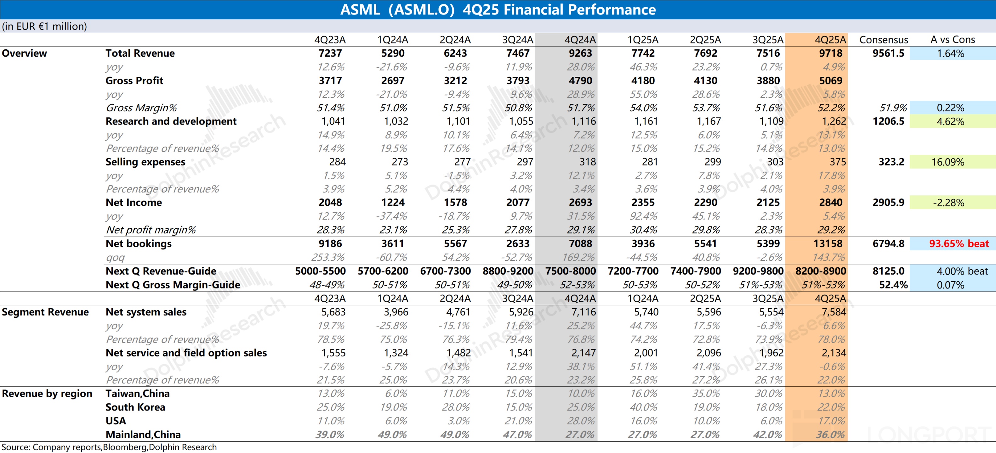 设备维护及管理业务: 收入预计连续第二年增长,得益于 EUV 系统安装基数扩大带来的服务收入增长,以及客户为满足产能需求制定的性能升级计划。具体业绩指引: