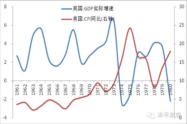 1973年第一次石油危机爆发,布雷顿森林体系瓦解,全球经济陷入衰退,导致英国低增长、高失业、高通胀、国际收支恶化等经济矛盾激化。面对危机,英国工党政府依然采取凯恩斯主义的宏观调控政策,试图通过逆周期的财政和货币政策刺激需求来降低失业率,推动经济复苏。但是英国经济面临的是供给侧的结构性问题,需求侧的刺激不但没有改善经济,反而造成英国长期持续的经济滞涨。