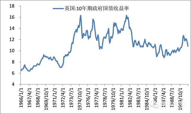 撒切尔夫人执政时期(1979—1990),在宏观经济政策上放弃传统的凯恩斯主义的需求管理,转而采取货币主义控制货币供应量,将治理通货膨胀优先于充分就业。撒切尔政府严格控制货币供应量,提高银行利率,减少贷款发放额,从而减少市场货币流通量,压缩国内需求以控制通货膨胀。1979年撒切尔夫人上台后,将英国央行的基准利率由12%提高到17%的历史最高点。1980年起控制广义货币供应量M2的增长率,M2增速从1980-1981年的18.5%-25.2%降至1983年的10.3%。通货膨胀从1980年的18.0%降至1983年的4.6%,1986年进一步降至3.4%。