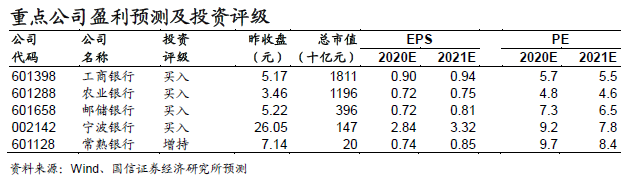 基于上述判断,我们认为对2020年净利润增速影响最大的是资产质量,对2021年影响最大的则是净息差。预计后续银行整体净利润的增速将维持在5%左右,低位增长。