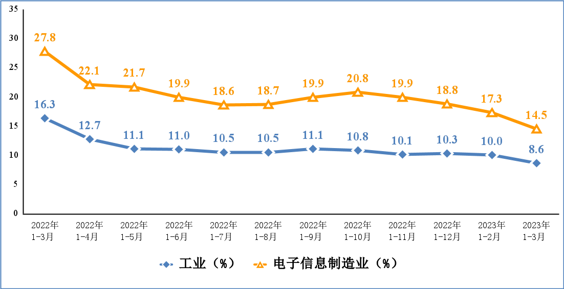 一季度,我国电子信息制造业生产降幅收窄,出口持续下滑,效益有所改善,投资保持增长。
