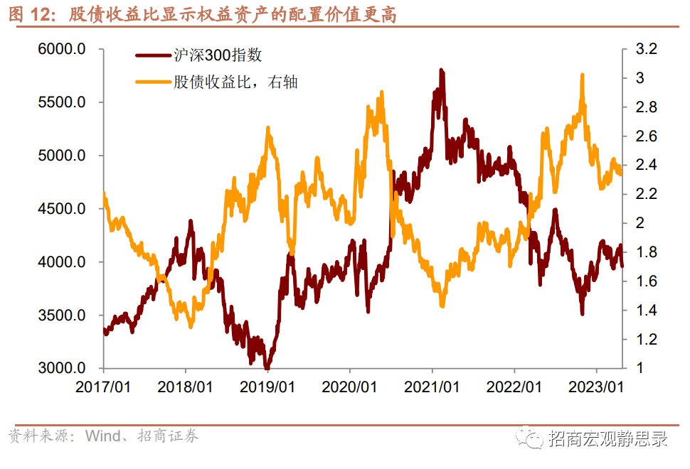 然而,政策起效有时滞,当前的政策调整将在下半年逐渐显示效果,对于短期资产配置有预期效应,但预期能否由弱转强,仅靠降息可能还不足够。因此,短期内我们建议继续超配债券资产,低配权益资产。从股债收益比的走势看,当前水平已经非常接近2022年4月、2019年年初的水平。因此,中期内,权益资产配置价值明显好于债券资产。