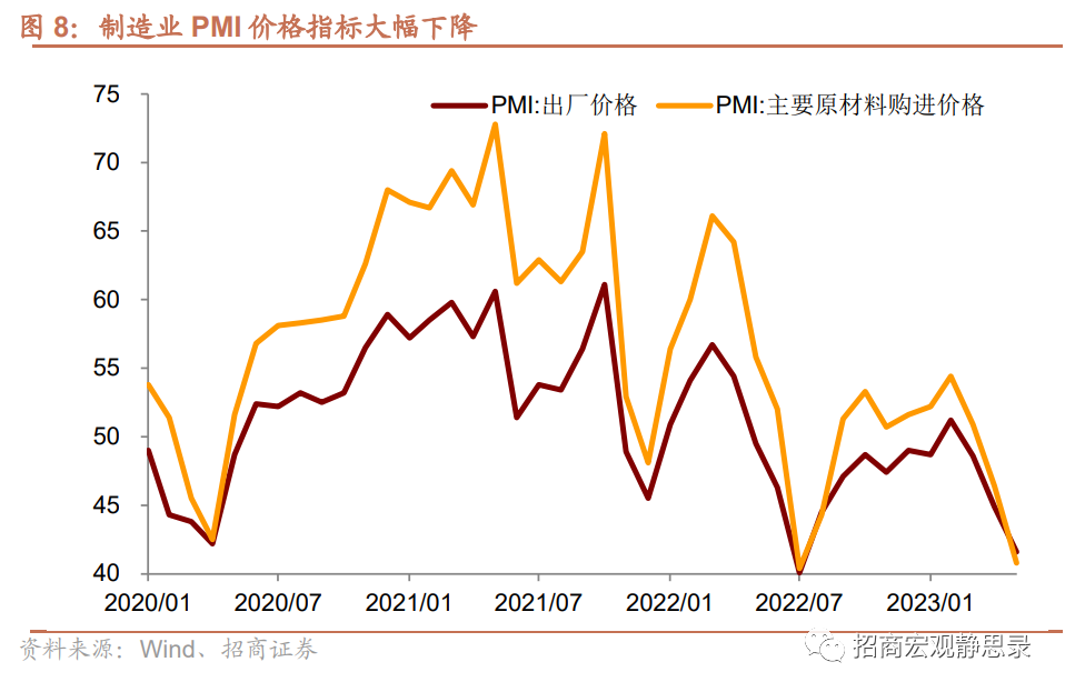 总之,若以价格代表投资需求形势,那么近期投资需求出现显著滑坡,自然也导致制造业生产受到明显冲击,尤其是规上工业企业的表现。近两月统计局制造业PMI持续低于临界值,且萎缩程度进一步加深,投资增速不断下滑,工业增速在低基数效应结束后再度下跌。