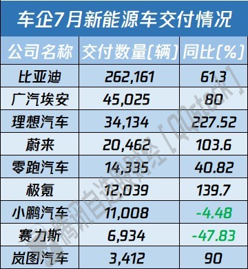 3、新能源车企7月成绩单:比亚迪销售26.21万辆,造车新势力齐爆发