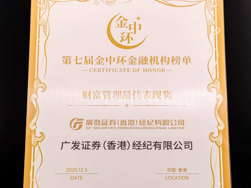 广发证券(香港)经纪有限公司荣膺2025·金中环“财富管理最佳表现奖”