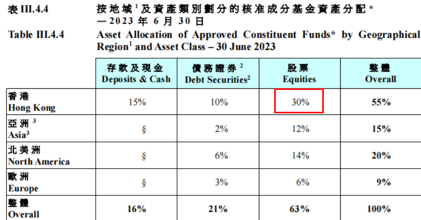 香港积金局资料显示,截至2023年6月底,MPF的股票基金占强积金总资产逾43.3%,绝对是强积金体系中最重要的资产类别。