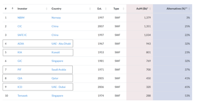 阿布扎比投资局、穆巴达拉投资公司、卡塔尔投资局等也在一级市场进行投资。