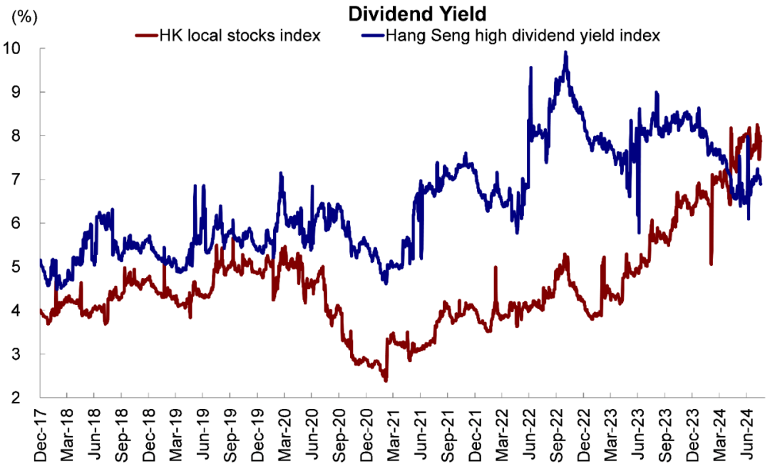 图表:香港本地股指数股息率当前高于恒生高股息率指数