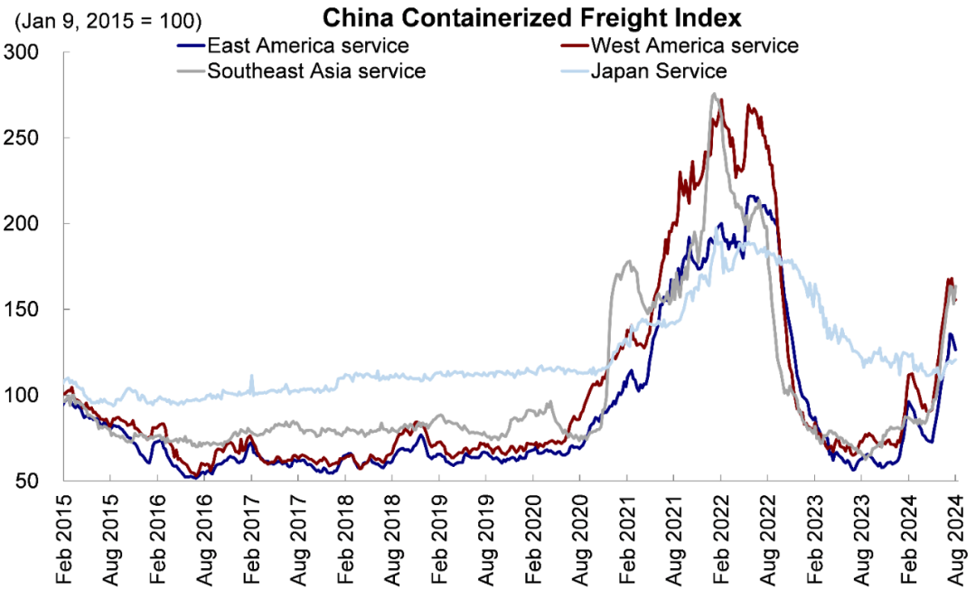 图表:近期出口集装箱运价指数下滑,外需拉动放缓