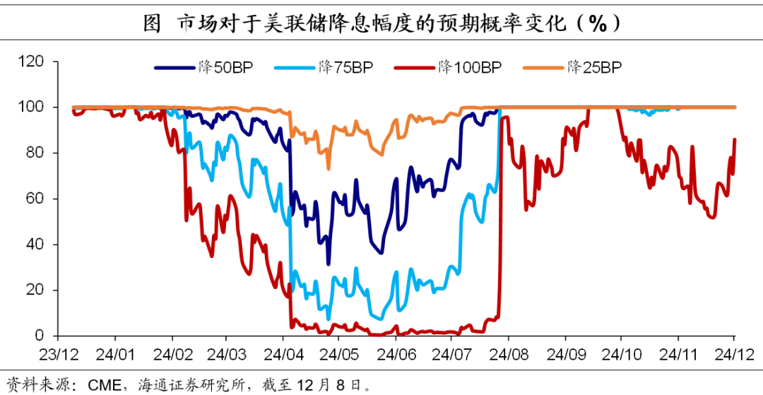 此外,特朗普上任后的政策,有增加通胀上行风险。我们预计,明年美联储大概率仍有降息,但节奏将明显放缓,或有阶段性暂停。