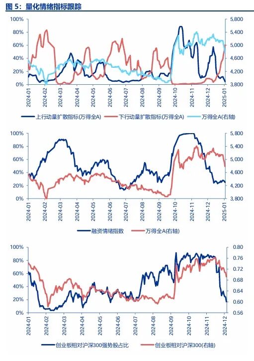12月中旬,市场就已经进入了赚钱效应收缩波段,短期加速调整后,赚钱效应指标已处于历史相对低位。我们观察到,各类投资者依次放弃牛市一蹴而就的假设。随着短期调整加速,市场进一步下修了年初和春季行情的预期收益率。市场预期下修的过程:政策预期高点出现,主要矛盾从国内政策发力单边影响转向国内海外相对影响——10-11月消费品以旧换新政策效果只是脉冲式改善,市场对消费刺激的效果预期修正——12月中旬以来,新主题挖掘的胜率下降,交易性资金活跃度开始退坡——资金推动的标的强动量也出现波折,交易性资金活跃度加速下行。 此前,我们基于平均持仓时间的跟踪,提示了短期交易博弈的强度是牛市级别。一旦牛市预期出现扰动,短期交易博弈主导的资产性价比极低。交易性资金退坡推动的调整就是速度快、幅度大的。 特朗普交易关键窗口临近,潜在不确定性仍较大,短期调整对此集中定价。1月下旬前,这个因素可能持续抑制做多意愿、压制风险偏好。这种情况下,短期风险偏好可能持续偏低。与风险偏好强相关的主题投资,在普跌之后可能还有分化阶段。部分与特朗普交易相关性弱(国内AI,低空经济),甚至是对冲特朗普交易的主题(大消费),可能会保持相对强势。但本就是以资金推动为主的“一波流”主题,短期可能出现趋势性调整,这依然是需要回避的风险。1月下旬调整可能告一段落,彼时市场可能处于短期高性价比位置,市场可能有效反弹。 二、调整后值得关注的积极因素:1. 政策发力依然是重要的支撑因素:(1) 政策落实定调“能早则早,宁早勿晚”。(2) 防风险政策持续发力,力求见效。(3) 消费刺激政策全面铺开。2.“稳住楼市股市”导向下,稳定资本市场预期更早发力是大概率。3. 有产业趋势支撑的主题,还有第二和第三波。调整后,我们更加强调,春季行情还是有机会的震荡市。 短期赚钱效应已回落至相对低位,调整后春季行情演绎空间增加是确定的。不确定的是短期调整加速,微观结构问题仍突出,幅度上可能超调。 这里我们提示3个调整后值得关注的积极因素,这是把握反弹逻辑和强势结构的线索:1. 政策发力依然是A股重要的支撑因素:(1) 李强总理定调政策落实“能早则早,宁早勿晚”。中央经济工作会议后,政策表述难再超预期,但一季度政策布局细化,也不会低于预期。(2) 防风险政策持续发力,在实际见效前,政策发力的方向不会变。(3) 消费刺激政策仍在布局期。针对各类人群,各种消费情景的刺激政策都在布局落实,这仍是春季主题性机会的重要来源。2. “稳住楼市股市”导向下,稳定资本市场预期方向没疑问,只有节奏问题。若政策提前发力,高股息占优行情可能强化,相对应的“主题再唱戏”的春季反弹行情也可能提前到来。3. 有产业趋势支撑的主题,还有第二和第三波,这类机会可能与春季反弹行情同步兑现。 三、短期是主题调整波段,也是高股息占优波段。后续机会在于,有产业趋势的科技主题可能有第二和第三波创新高行情,重点关注国内AI应用和低空经济。高股息投资弹性更高、更持续的方向是市值管理和回购注销。 2025年各阶段结构推荐不变:一季度高股息搭台,主题活跃唱戏;二季度政策效果的关键验证期,“两新”和“两重”同样重要,关注逆周期调节受益的建筑、建材,房地产;下半年核心资产困境反转,主动管理否极泰来。 春季行情的结构我们继续推荐“高股息搭台,主题再活跃唱戏”。有产业趋势的科技主题可能有第二、第三波新高行情,重点关注国内AI应用和低空经济。高股息投资中的主题线索,可能更有弹性。业绩验证期临近,破净市值管理25年一季报进入方案落地期。另外,回购注销是提升股东回报的新趋势,可能增强高股息投资的效果。 2025年结构推荐节奏不变:一季度“高股息搭台,主题活跃唱戏”。二季度政策发力关键验证期。二季度“两重”的重要性与“两新”可能相当。总量上,国内政策发力和出口增速回落可能对冲,但结构上无法完全对冲。财政发力更受益的方向是建筑、建材和ToG的计算机。下半年核心资产困境反转,主动管理否极泰来。26年供给出清,总体盈利能力有望迎来拐点。供给率先出清的结构就是机构重仓的新能源(动力电池、硅片、逆变器出清最快)、电子(消费电子零部件)和医药生物(CXO和创新药)。这些细分方向行情能提前抢跑,而25H2发酵供需格局拐点预期的核心资产可能进一步扩散。 风险提示:海外经济衰退超预期,国内经济复苏不及预期