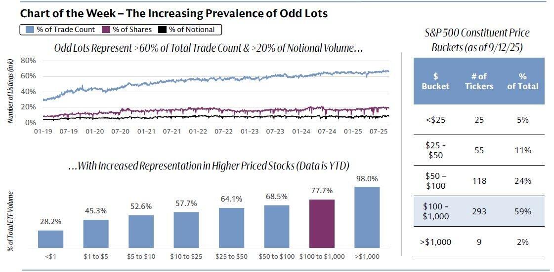 据高盛最新报告,散户交易代理指标——不足100股的零股交易在第三季度占美股交易总量的66%,较2019年1月的31%大幅跃升,占名义交易量的20%以上。这种散户疯狂涌入的现象恰恰印证了FOMO情绪的升温。