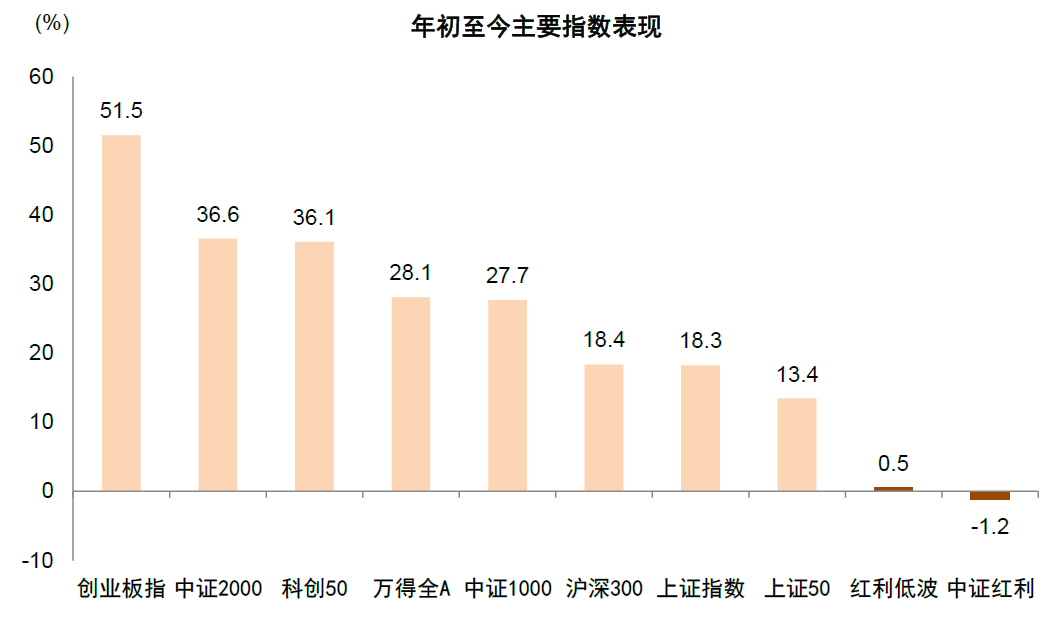 图表1:年初以来成长风格主导A股市场,红利风格表现相对平淡