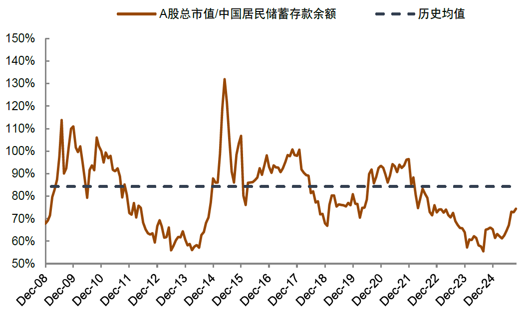 图表6:股票市场市值相比居民储蓄仍然低于历史均值