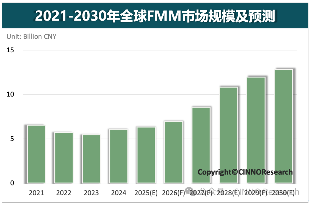 图示: 2021-2030年全球FMM市场规模及预测,来源: CINNO Research