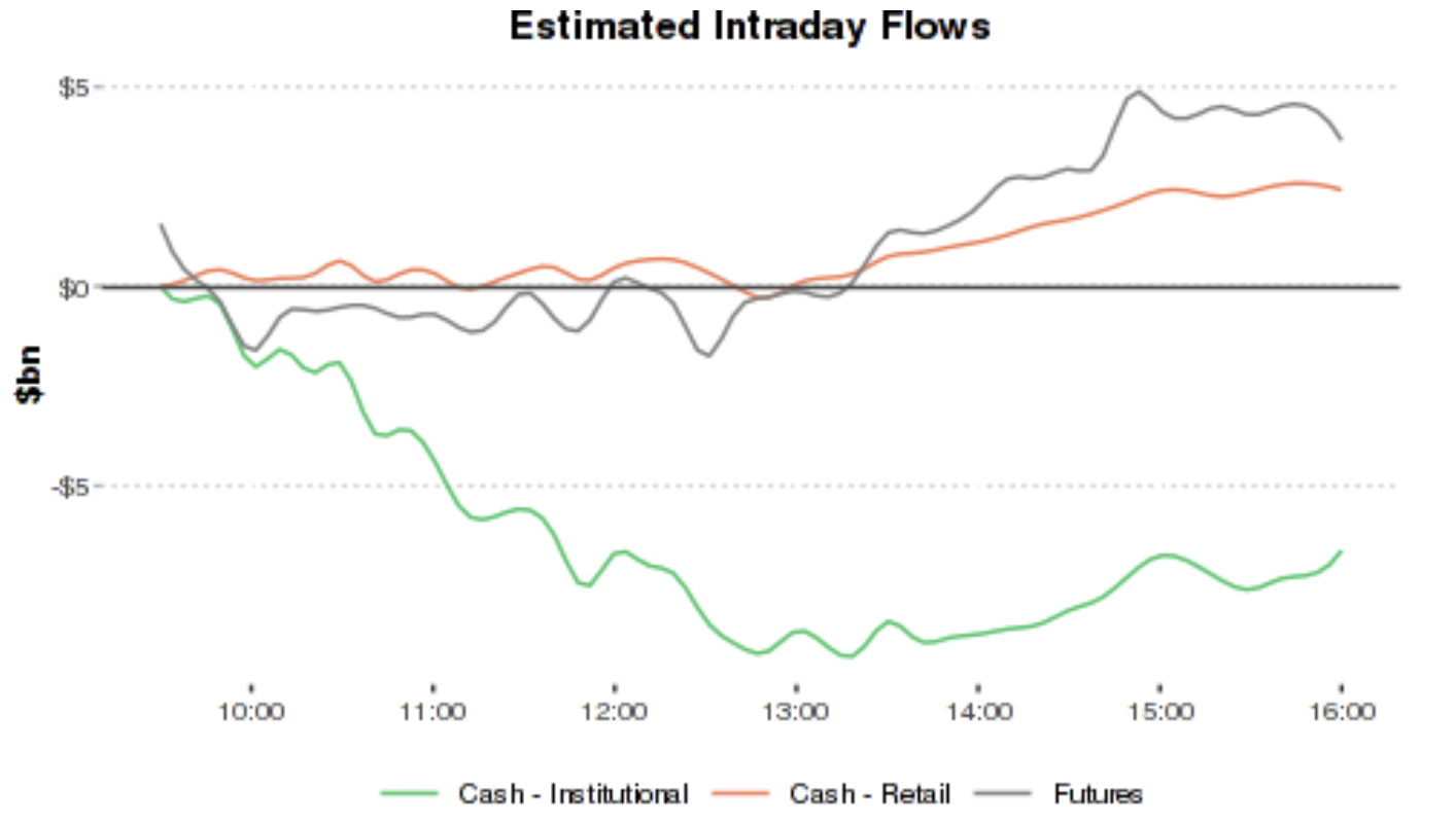 以往散户的逢跌买入往往是价格下跌的缓冲器,但这一次缺席明显。摩根士丹利称,散户当日净买入强度低(在过去一年里,只有16%的天数比今天更低),主要发生在下午市场反弹时段。