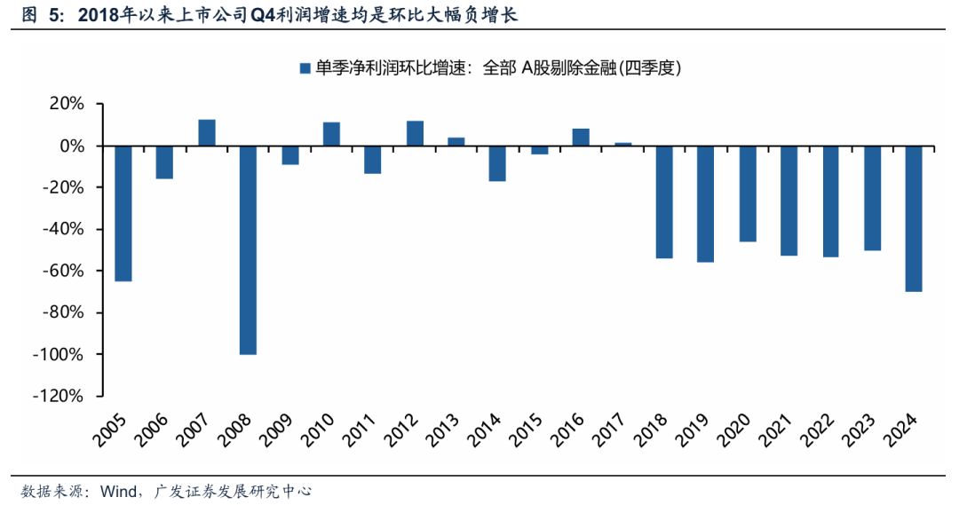 事实上,2018年开始,上市公司在Q4往往进行阶段性财务整理。下图可见,2018年之后,受到减值、缴税、发奖金等诸多因素影响,上市公司Q4利润均是环比大幅负增长。