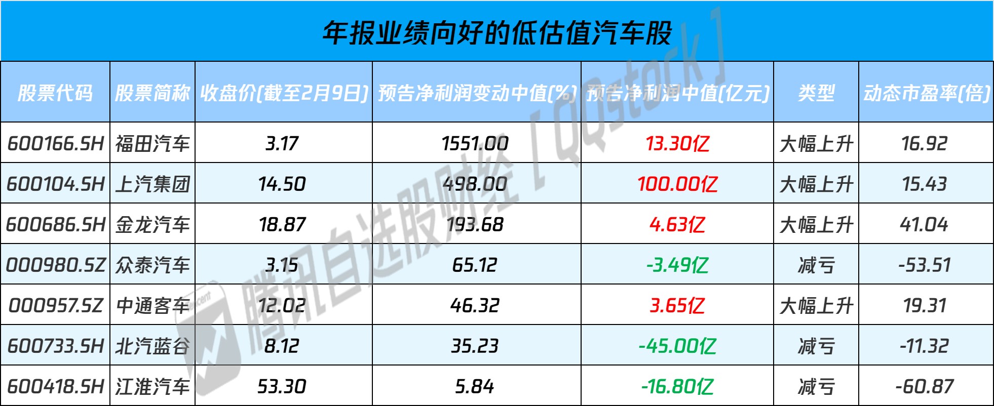 此外,自选股梳理了年报业绩向好的低估值汽车概念股名单,其中3股净利预增翻倍,仅供参考。