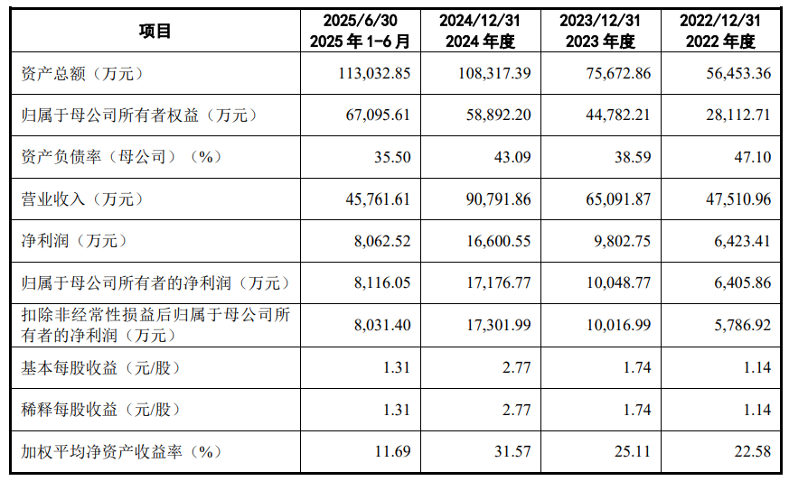 财务方面,于2022年、2023年及2024年,公司实现营业收入分别约为4.75亿元、6.51亿元、9.08亿元人民币;同期净利润分别约为6423.41万元、9802.75万元、1.66亿元人民币。