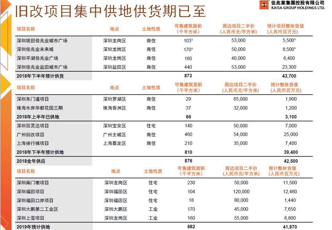 下图可见:今年下半年旧改释放的可售房源,今明两年旧改释放的土地资源。