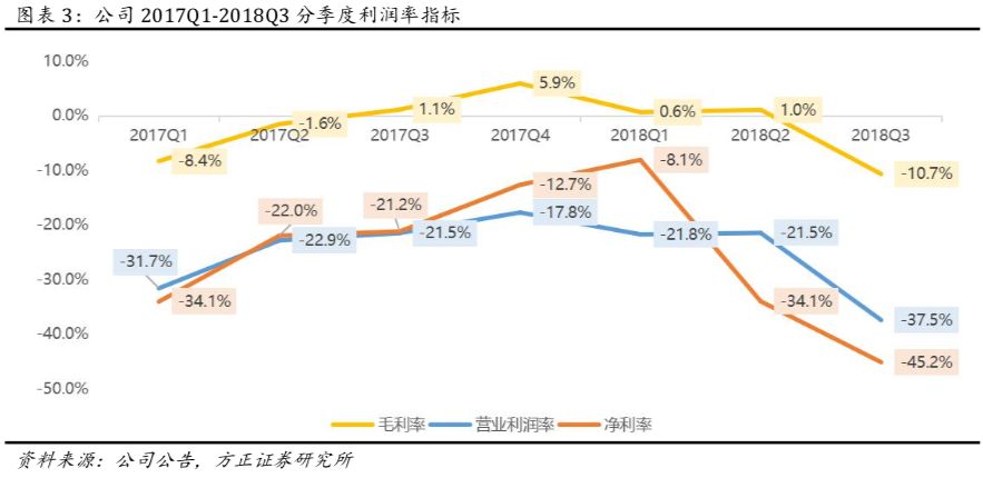 毛利率:18Q3毛利-7.41亿元(YoY-1505%,QoQ-1267%),毛利率-10.7%(YoY-11.8pct,QoQ-11.7pct);