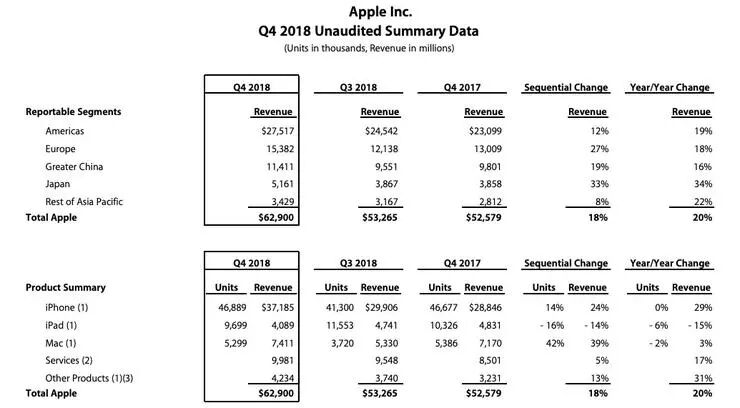 从整体营收数字来看,苹果在 Q4 的表现是相当健康的。