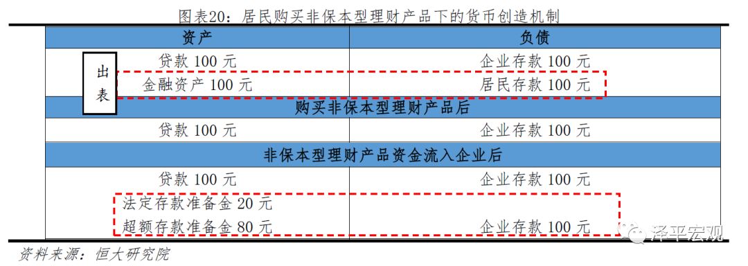 1)考虑到非保本型理财产品的资金来源于居民存款,理财产品并不能增加货币供给。