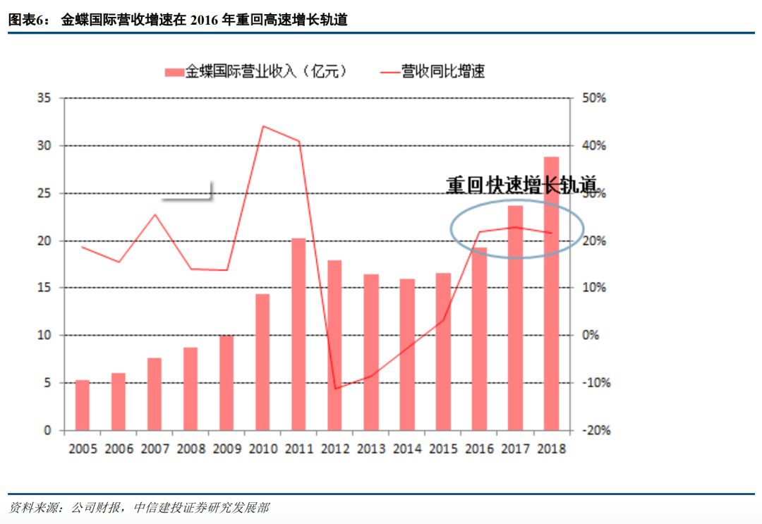 目前我国企业级信息化服务主要参与者有SAP、Oracle、用友、金蝶、浪潮、鼎捷等公司。整体来看行业在2011年以前我国管理软件行业规模处于高速增长阶段,进入2011年后,随着企业信息化达到一定水平,管理软件的渗透变得困难,2011-2015年间经历了一轮增长率的下行,公司营收出现负增长情况。但是2015年后,公司业务重回高增长轨道,2016-2018年实现营业收入19.3亿元、23.7亿元、28.8亿元,同比增长22%、23%、22%。