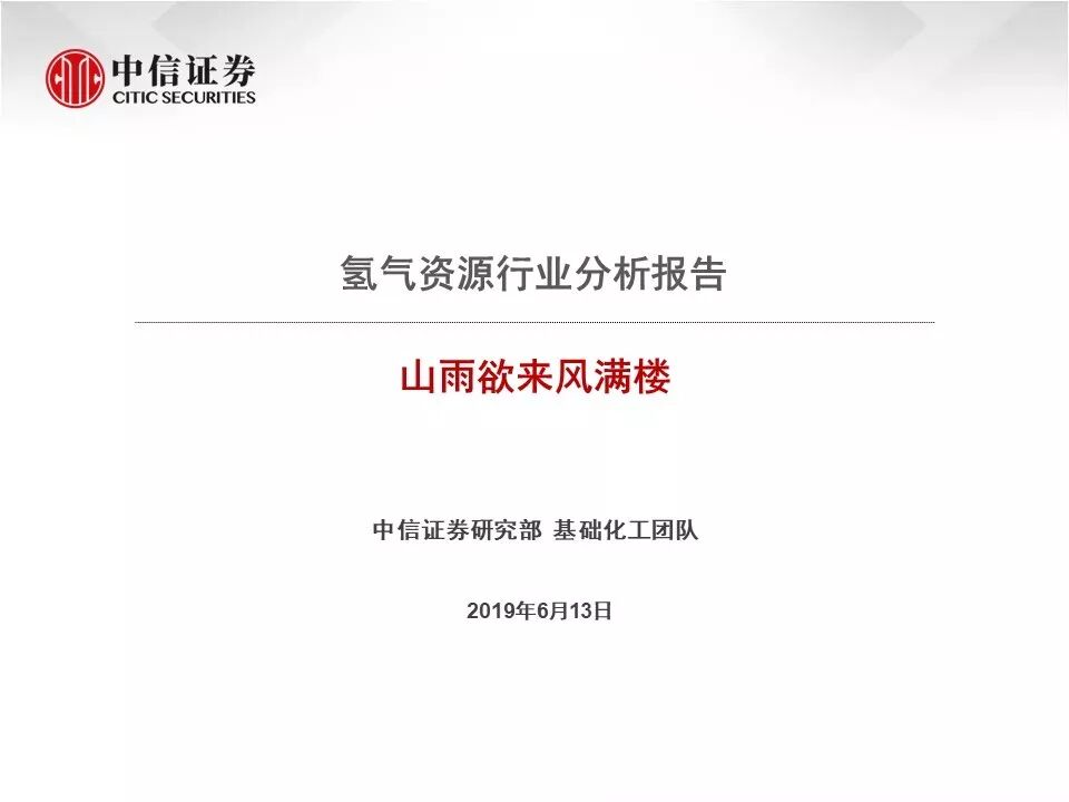 本文来源微信公众号“CITICS化工研究”,作者中信证券首席化工分析师王喆,化工分析师袁健聪,原文标题《【中信证券化工】氢气资源行业分析报告:山雨欲来风满楼》。