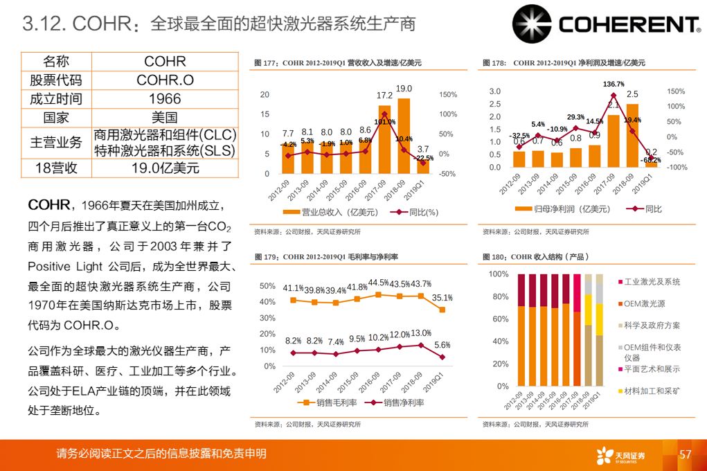 重要业绩指引:(1)UDC指引:公司预计2019年营收范围为3.45-3.65亿美元,同比增速为40-48%。(2)Coherent:预计2019年营业收入下降8-12%。(3)精测电子:业绩指引:公司预计2019年上半年归母净利润1.55-1.65亿元,同比增长32-41%。