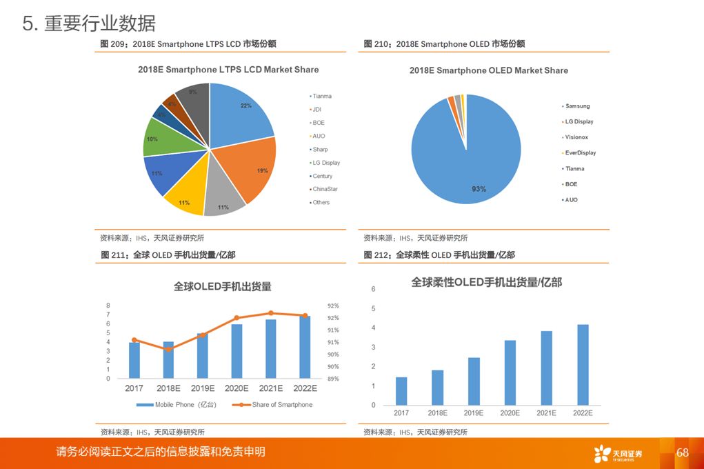 重要业绩指引:三星电子2019 年指引:柔性OLED营收将增长,强化在5G、可折叠设备和QLED8K电视的市场溢价能力,发布TheFrame和SerifTV等新产品。