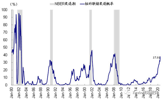 纽约联储模型测算2020年8月衰退的概率攀升至37.9%
