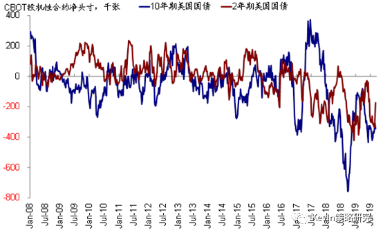 美国2年期国债空头仓位明显减少,10年期国债空头略有增加