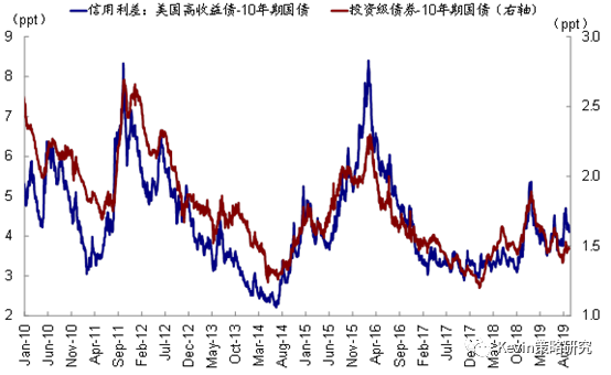 盈利方面,当前市场一致预期标普500指数2019年EPS同比增长2.3%,2020年10.5%;新兴市场盈利预测有所企稳,当前市场预期2019年EPS同比回落8%(vs. 前一周-8.3%)。