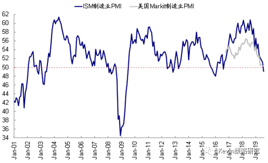 8月美国ISM制造业PMI已经掉入收缩区间,Markit制造业PMI距离收缩也仅一步之遥