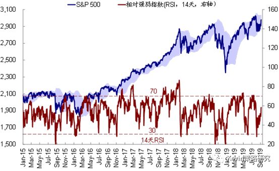 不过,相比之下,增长压力进一步显现。美国8月ISM制造业PMI大幅降至49.1,为2016年初新低,新出口订单拖累尤为明显;同时8月非农就业低于上月且不及预期,但工资增速却超预期,这对于风险资产而言不是一个非常“友好”的组合。劳动参与率小幅抬升和失业率的下行表明就业市场整体依然非常紧张,因此工资或仍有上行压力。在增长下行打压美元的同时,也使得当前美股估值(19.5倍标普500静态PE)高于我们股权风险溢价模型隐含的合理水平(19.2倍),因此在内外部不确定性依然存在的背景下,美联储采取进一步宽松措施仍显得箭在弦上。英国议会通过旨在阻止硬退欧的法案或有助于降低硬退欧风险,但长期依然存在很大变数。