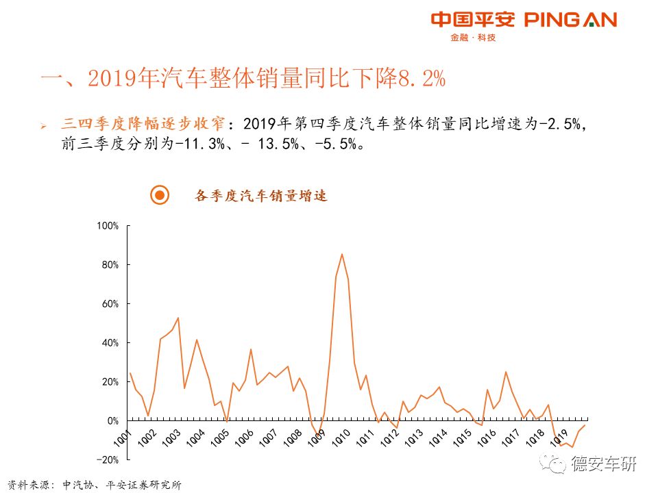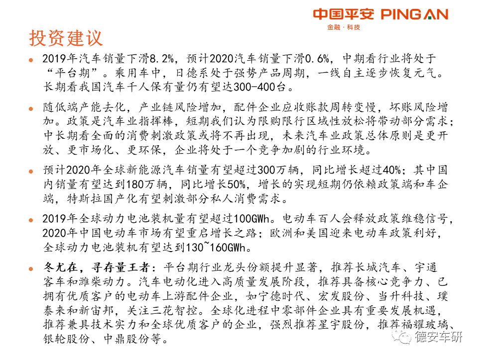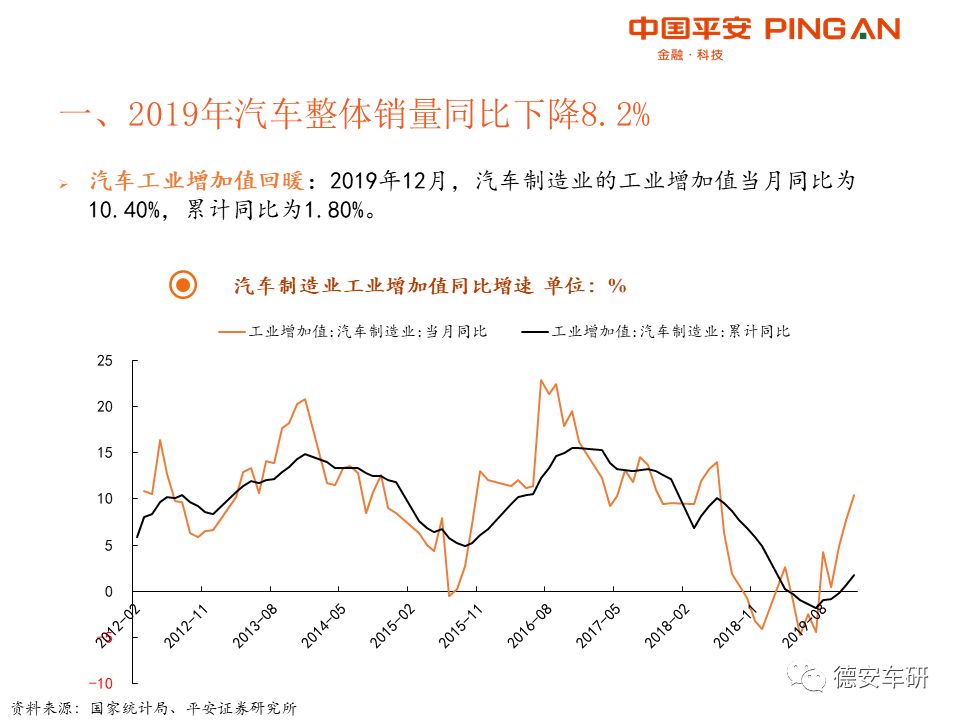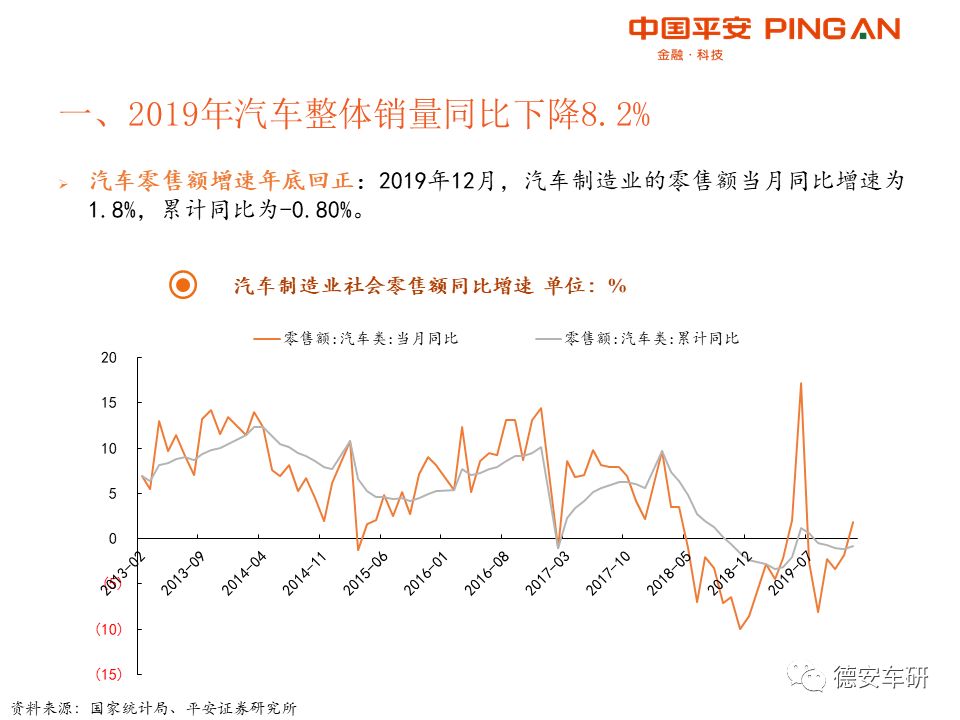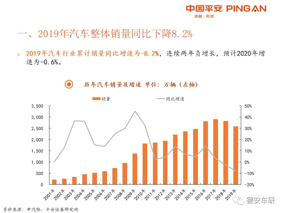 2019年汽车销量下滑8.2%,预计2020汽车销量下滑0.6%,中期看行业将处于"平台期”。