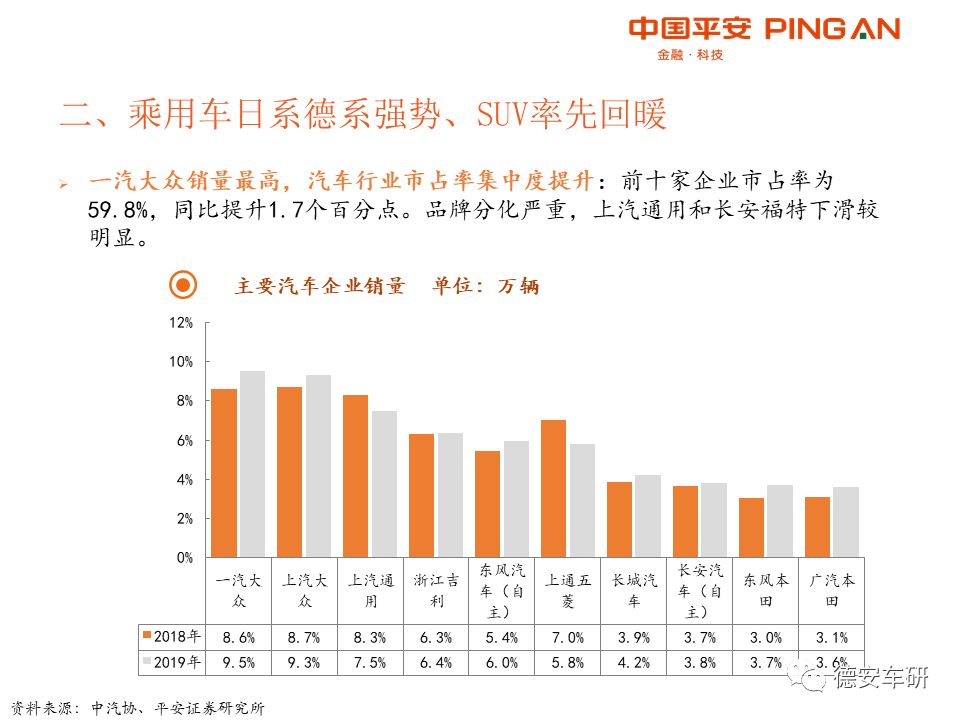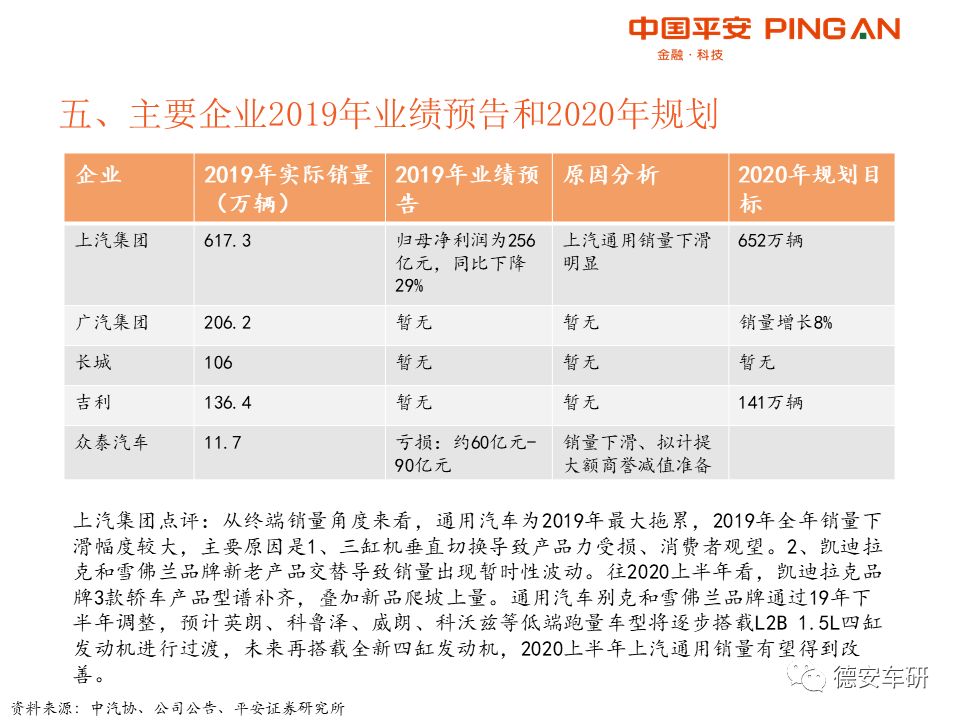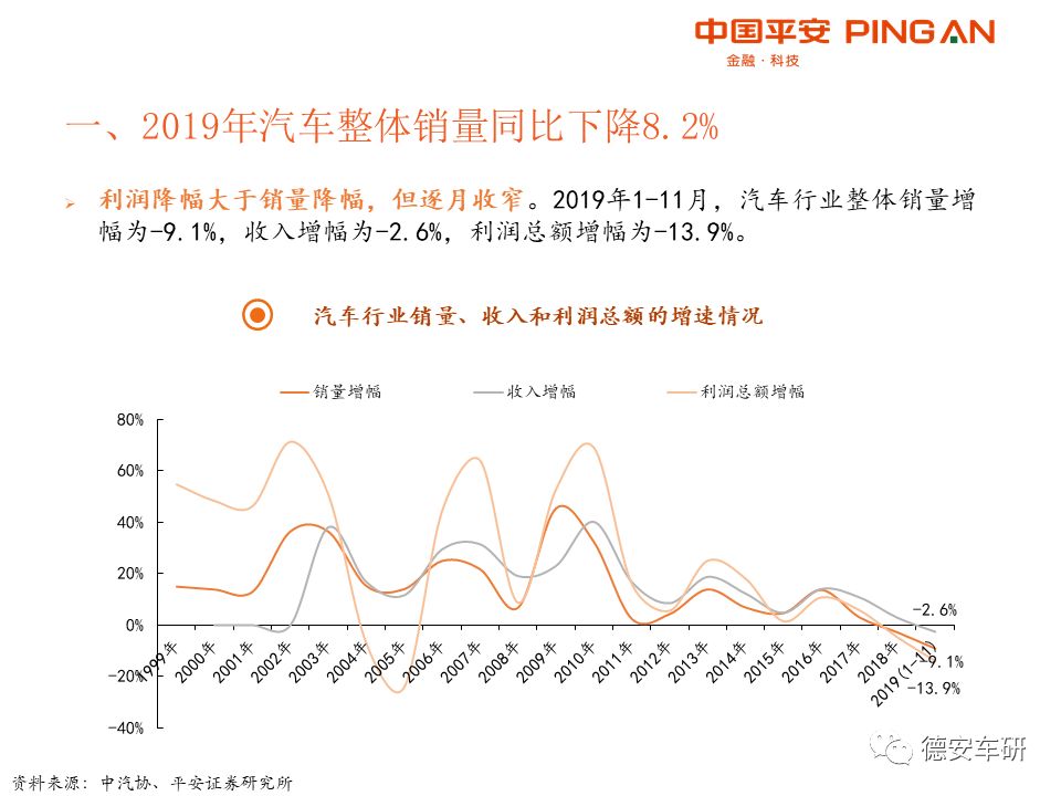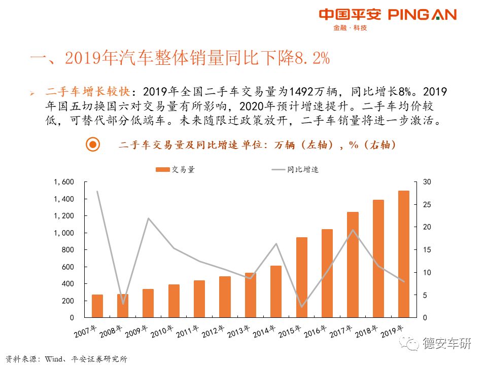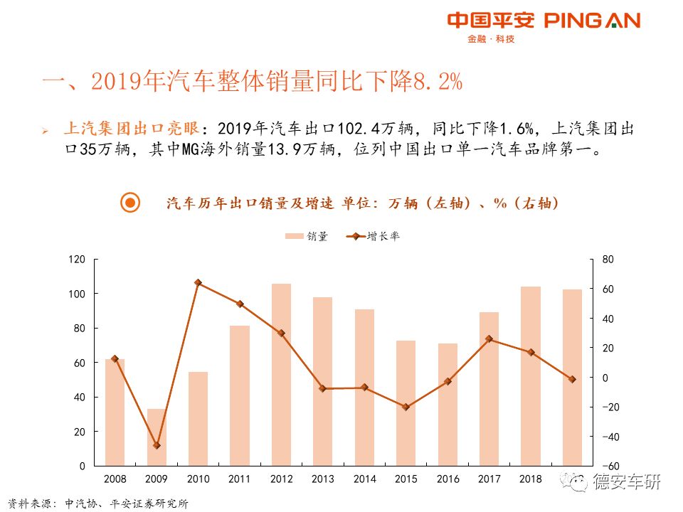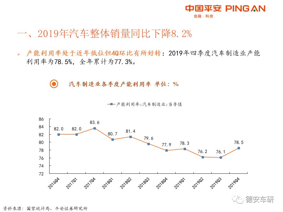 2019年汽车销量下滑8.2%,预计2020汽车销量下滑0.6%,中期看行业将处于"平台期”。