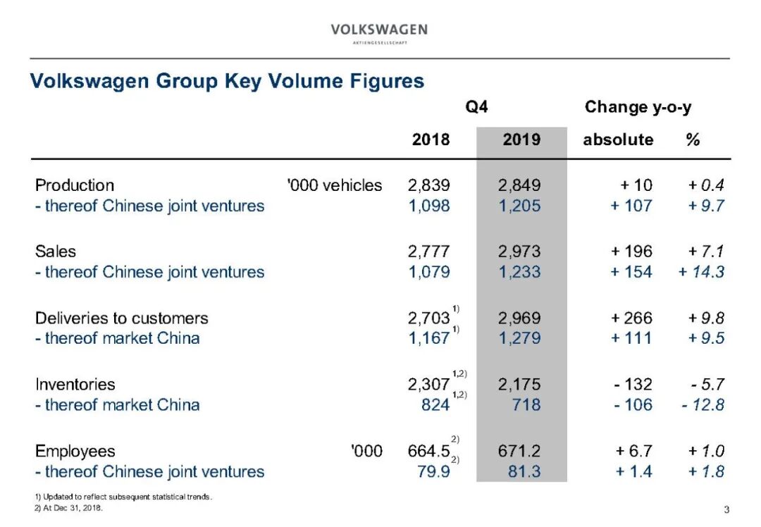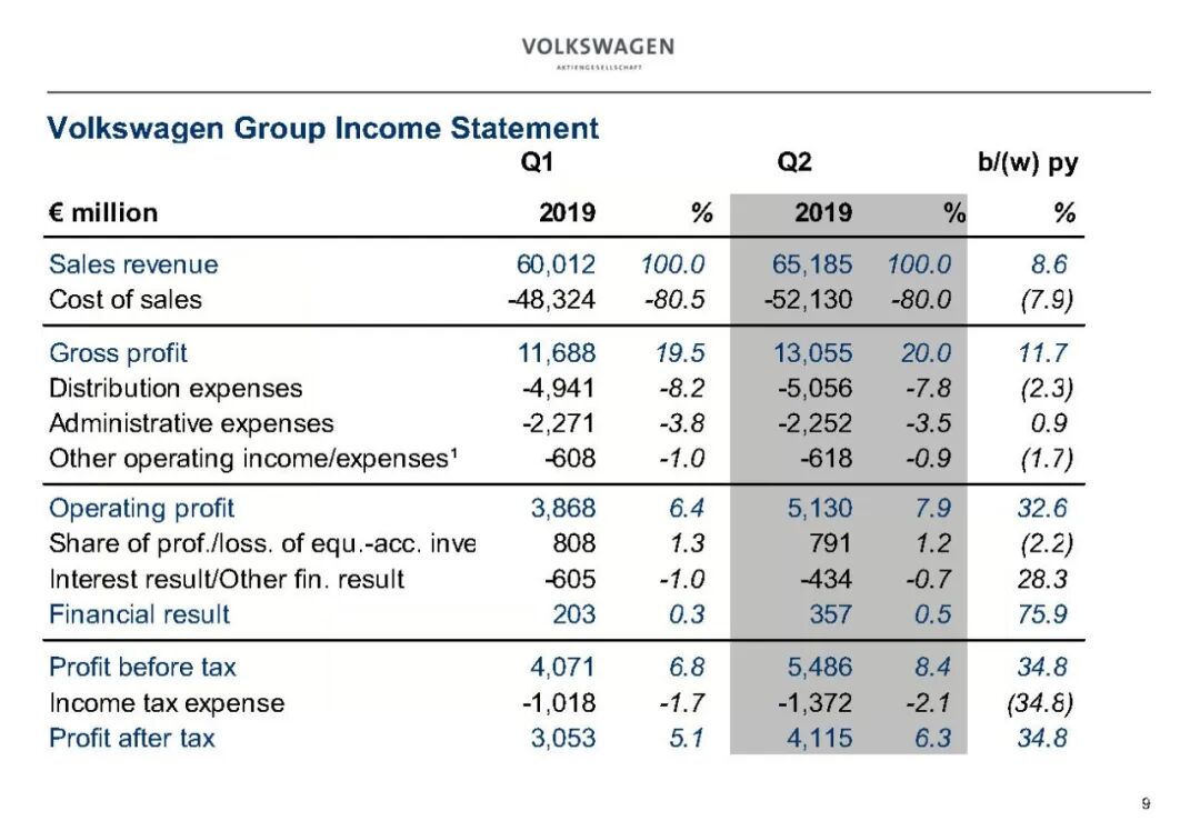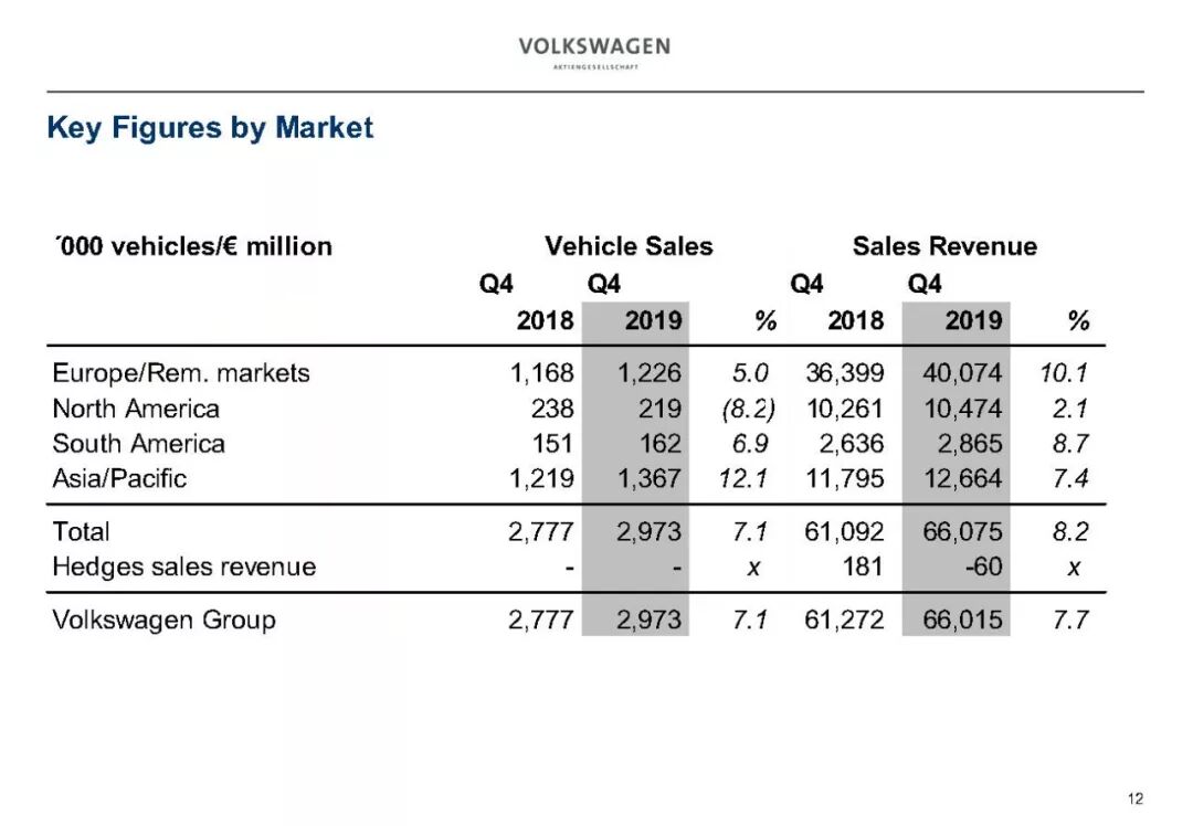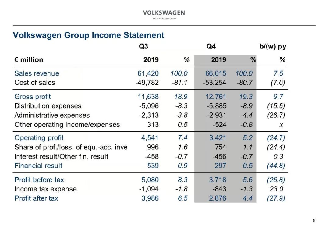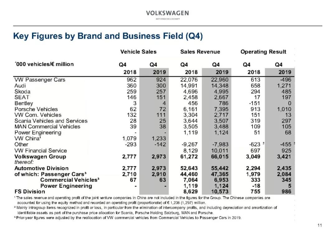 2019年大众汽车业务财务数据