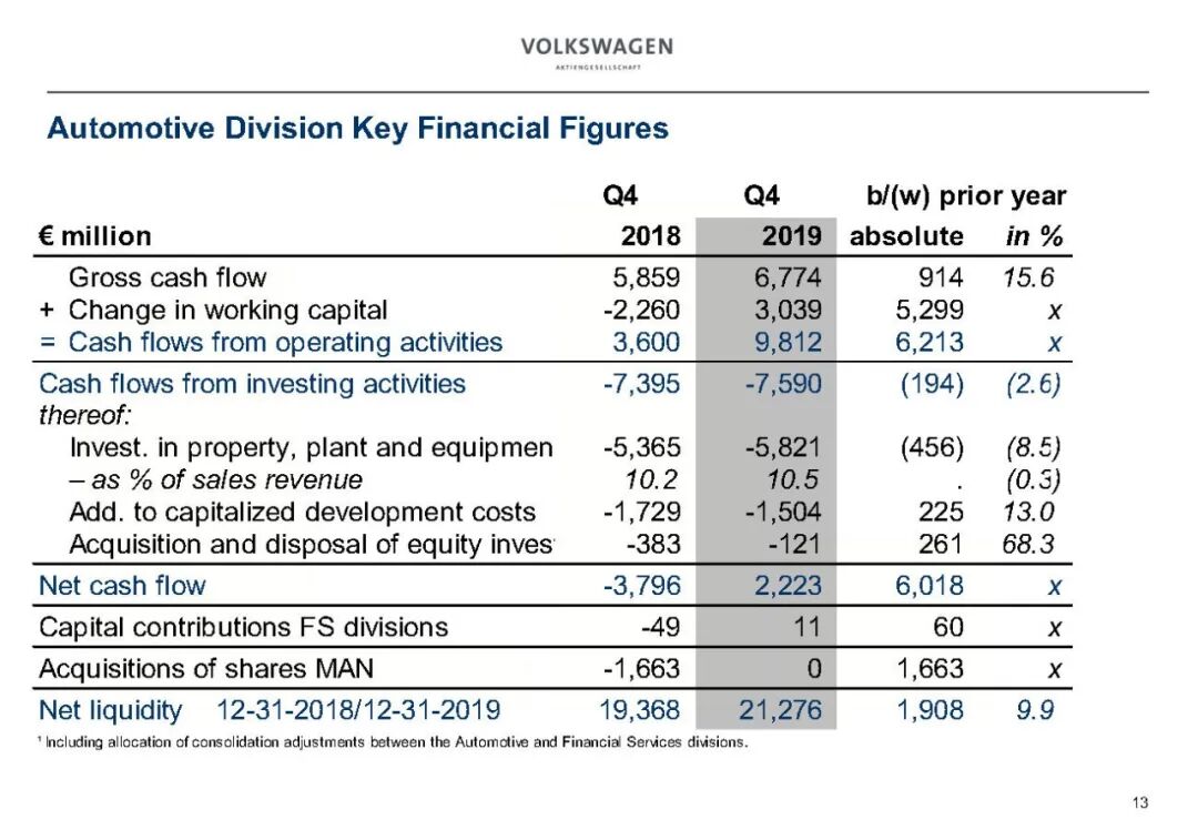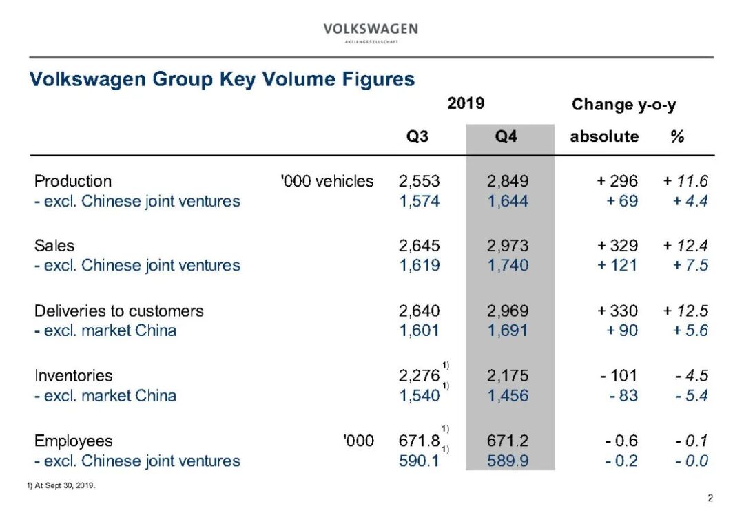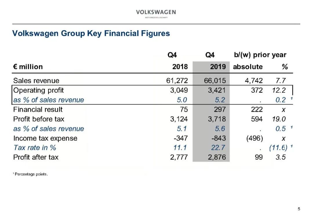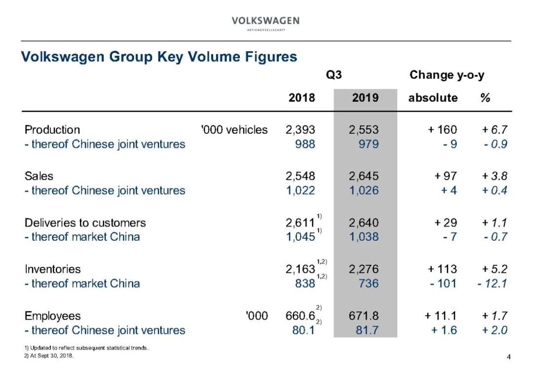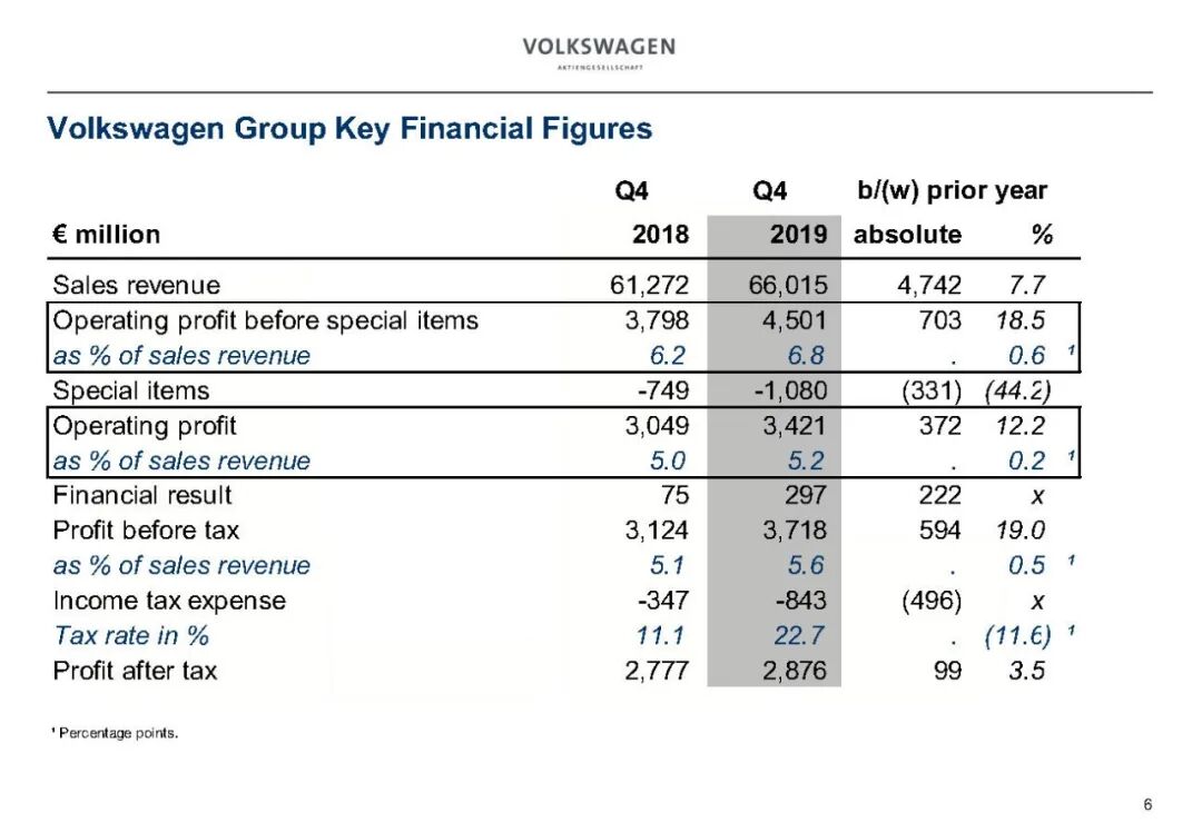 2019年大众汽车业务财务数据