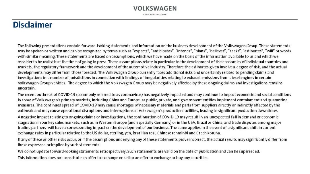 预期大众运营状况将于合理的时间内正常化。这是一个前所未有的挑战。当然,不能把大众排除在这些事态的发展之外。在2月底公司宣布了今年的预期,且假设情况将在合理的时间内正常化。这一假设是否仍然可行,时间将给我们答案。