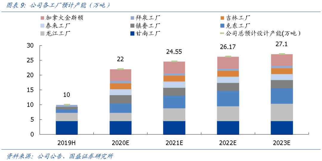 2019年产能增至12.7万吨,保障未来持续快速成长。截止2019年,飞鹤共有6家工厂参与生产,分别为甘南工厂、龙江工厂、克东工厂、镇赉工厂、拜泉工厂及泰来工厂,皆位于齐齐哈尔市周边,年产能达12.7万吨。为配合公司的高速发展战略,公司已计划新建吉林及加拿大金斯顿工厂,新建产能达6万吨。同时,公司计划增加龙江、克东及镇赉工厂的生产线,预计将新增9.1万吨产能,并预计于2020-2023年逐步完工。我们预期,公司未来产能将有序扩张,为生产提供充分保障。