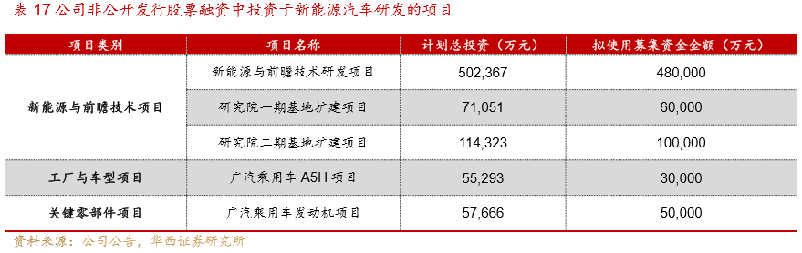 融资加大研发投入,加码布局新能源。2017年,公司非公开发行股票融资150.0亿元,而资金用途中包含多个新能源汽车研发项目:新能源汽车与前瞻技术研发项目、研究院基地扩建项目等。