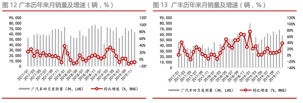 广丰:1)2019年2月,第八代凯美瑞改款上市,凯美瑞2.0L搭载全新TNGA动力总成,新增凯美瑞双擎运动版,全系车型增加和升级多项先进配置,价格保持不变。全系车型均满足“国六”排放标准,凯美瑞在2019年月销量达15,437辆。2)雷凌在2019年5月换代后便迎来了销量的逐步攀升,由5月的8,038辆上升至12月的18,221辆,2019年月均销量达18,469辆。