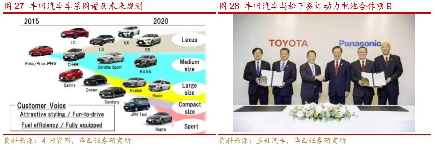 丰田加速切入电动,2050前100%取消燃油车。丰田此前一直聚焦氢燃料电池车和混动系统开发,但是在市场销量和扭转利润大幅下降趋势的压力下,丰田开始向包括纯电动车在内的全方位环保车战略倾斜。丰田的中期目标是加快推进PHEV车型,尽快实现纯电动量产。长期目标则是在2050年消除发动机车型,HEV和PHEV占七成,FCV和EV占三成。按照丰田的规划,自2020年起,丰田将在中国市场率先导入纯电动车型。随后,将按照日本、印度、美国、欧洲的顺序依次导入纯电动汽车。在2025年之前,丰田会将全球的纯电动车型扩大到10种以上。