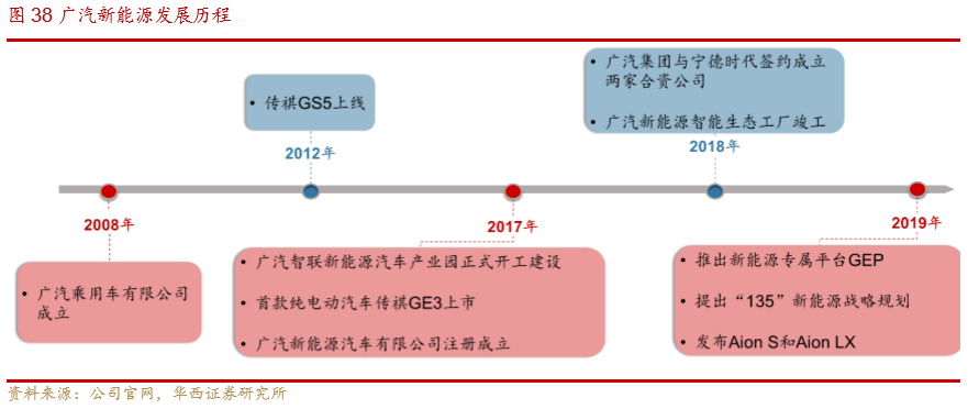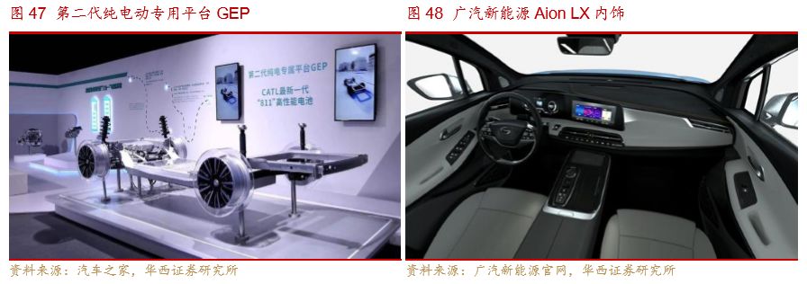 打造广汽新能源GEP平台。广汽新能源推出第二代纯电动专用平台GEP(GAC Electric Platform),该平台最大的优势就是电池与电驱动系统位于车辆中心,有利于车内空间最大化,公司已于2019年发布两款该平台下打造的车型:Aion S及Aion LX。未来广汽新能源计划每年将推出2款基于该平台打造的新能源车,助力新能源车的崛起。