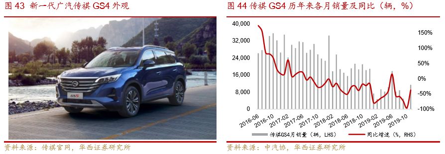 2)传祺GS4在2019年11月换代,采用GPMA模块化平台,在外观、动力等方面全面升级,预计2020年月销量可达2万辆+,并且也将带动其他车型的销售。