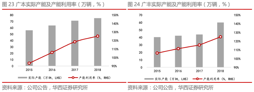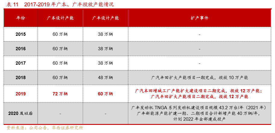 2)产能扩容奠定成长基础。广本、广丰2019年均新增产能12万辆;