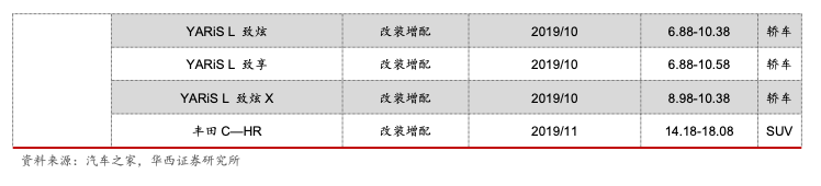 2)广丰3款新车、2款换代:新一代凯美瑞、雷凌全面升级,刺激终端销量;C-HR新车上市,进军小型SUV市场。